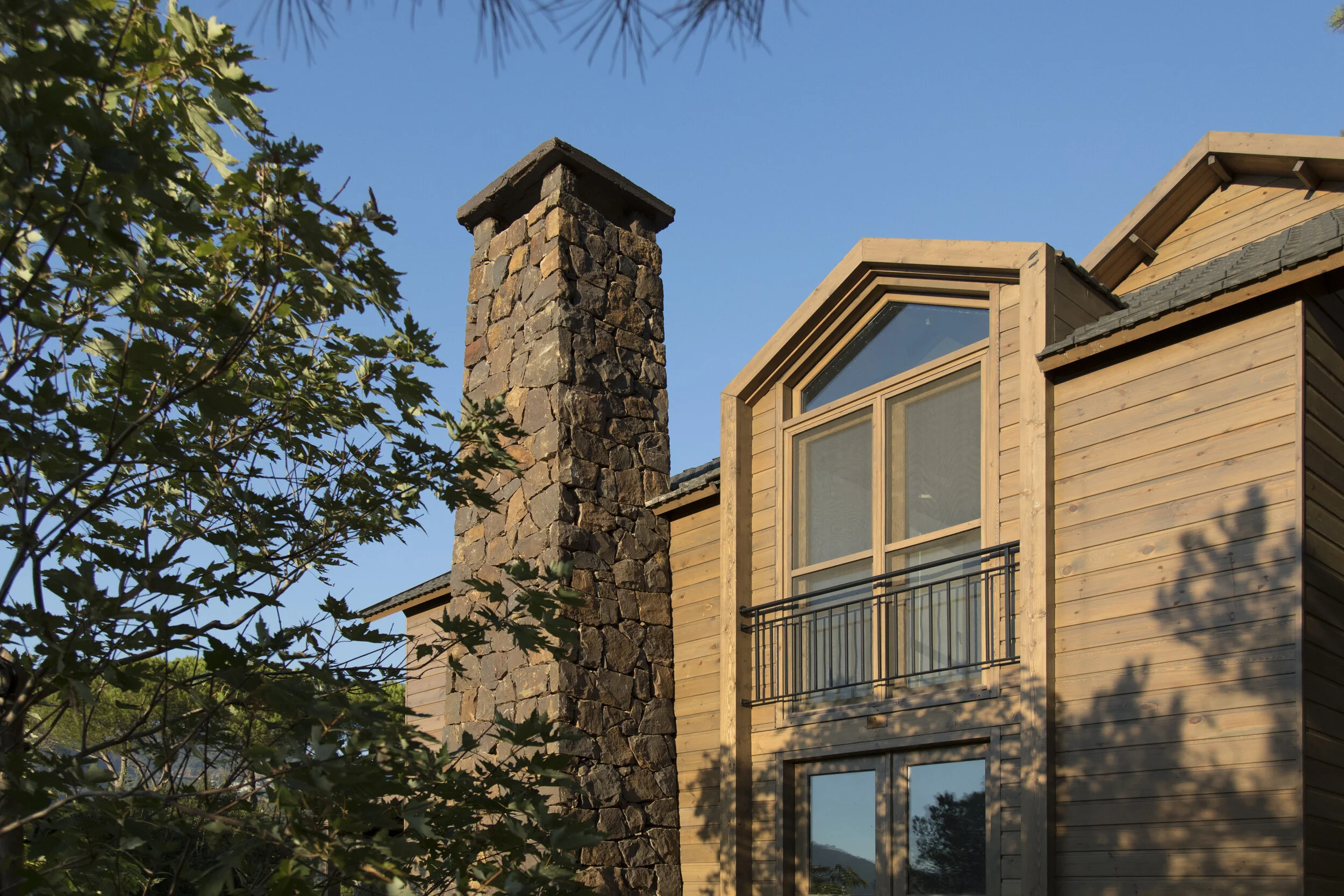 Cabanon en montagne, structure et finitions en bois massif; préfabriqué sur mesure en usine.